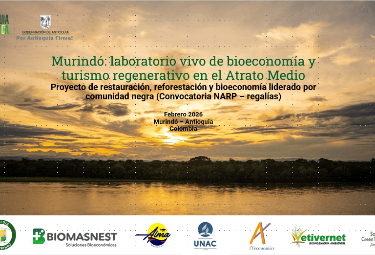 Proyecto de restauración ecológica y bioeconomía comunitaria en Murindó – Antioquia, liderado por el Consejo Comunitario PDI y aliados académicos, empresariales y públicos, que recupera ecosistemas estratégicos y activa modelos productivos y de turismo regenerativo en el Atrato Medio